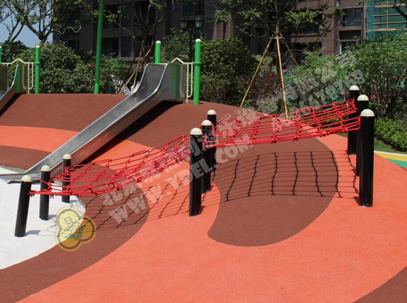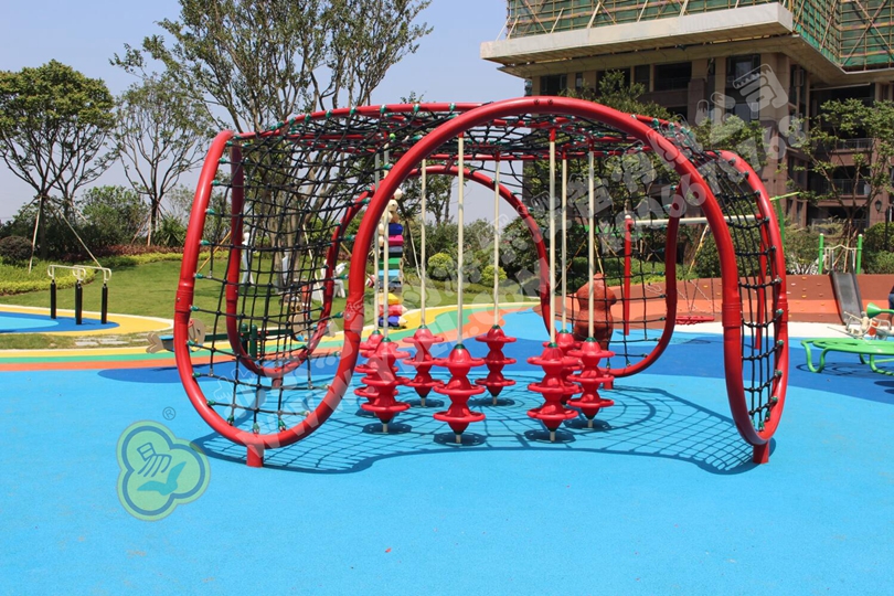 一眼望去,最引人注目的定是這紅色攀爬網(wǎng)。每個孩子的心中都住著一個“蜘蛛俠”,希望能像蜘蛛俠一樣在爬網(wǎng)上穿梭自如。