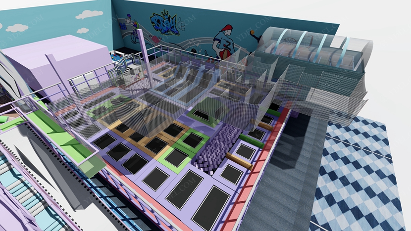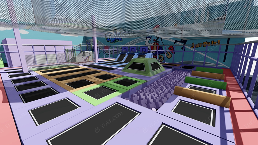 BCGY-17大型蹦床樂(lè)園采用分層設(shè)計(jì),下面是蹦床公園,上層則是設(shè)計(jì)成拓展游戲項(xiàng)目,這樣既節(jié)約了場(chǎng)地又豐富了玩法,這樣的大型蹦床樂(lè)園設(shè)計(jì)可提供更為豐富的玩法體驗(yàn)。