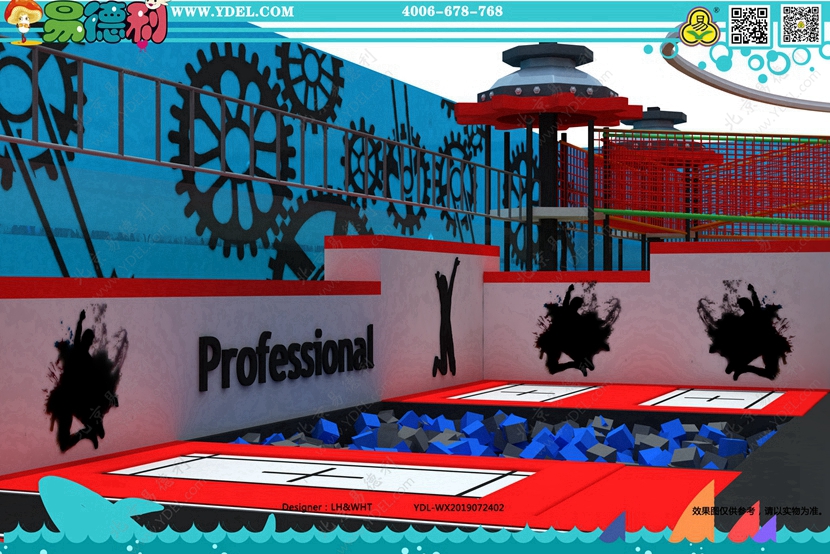 室內(nèi)蹦床公園可為不同年齡段的人群提供蹦床健身功能,設(shè)備安全系數(shù)高、可玩性比較強。