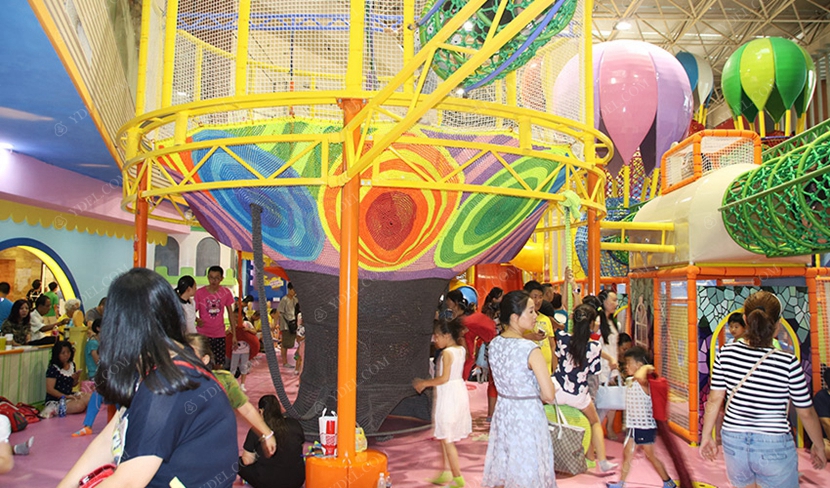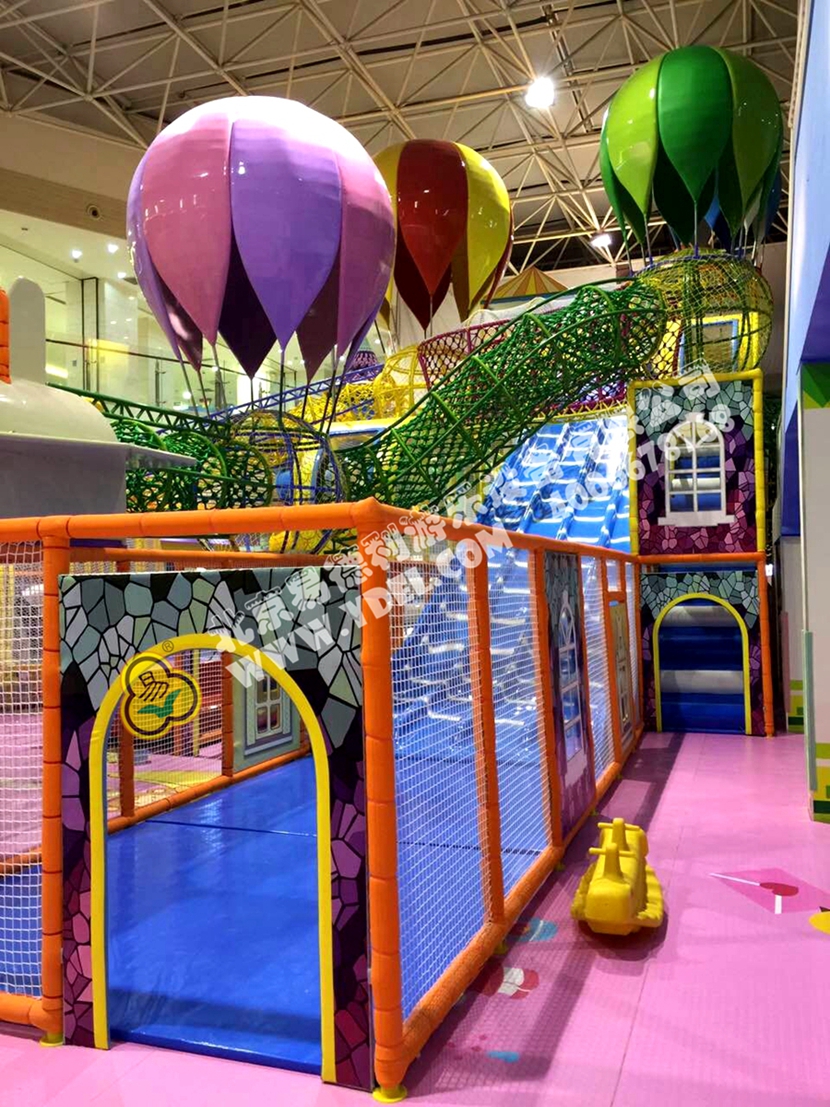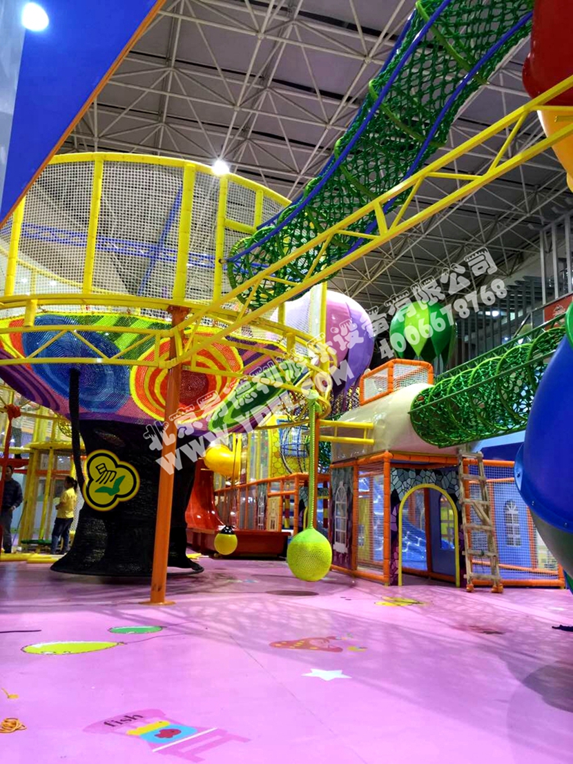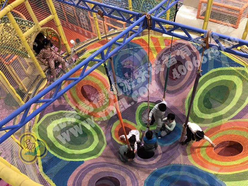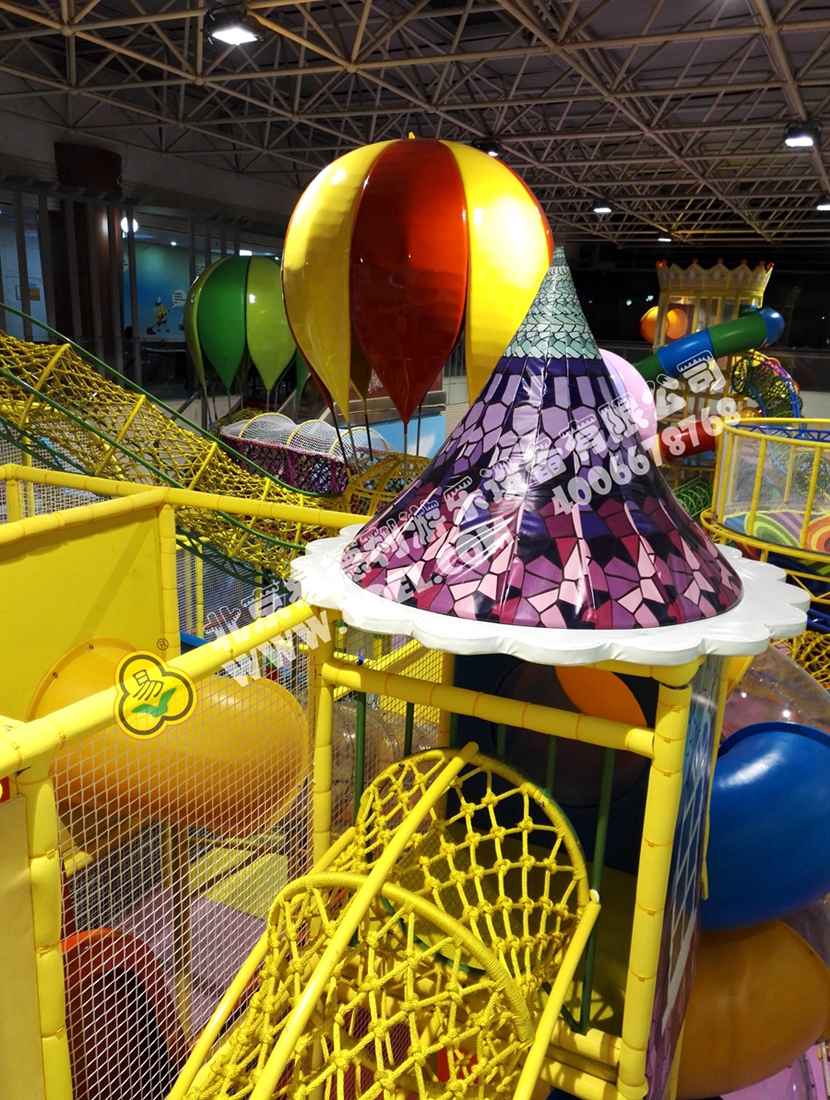 分兩個區(qū)域:淘氣城堡和闖關(guān)區(qū);這個項目集成了多種新產(chǎn)品及設(shè)計理念,我們的設(shè)計人員與安裝人員是功不可沒的!下面我?guī)纯催@些新奇好玩的游樂設(shè)備!