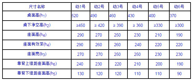 幼兒園桌椅技術要求及標準尺寸