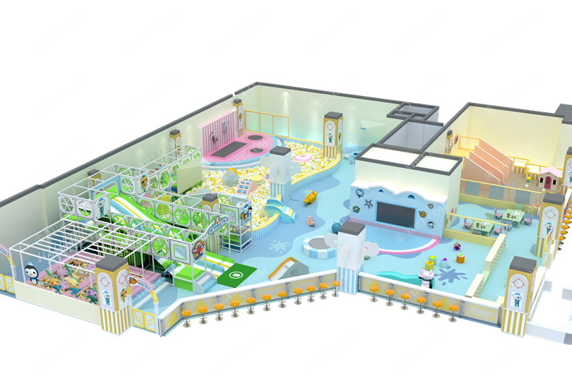 首先來(lái)說(shuō)面向兒童的游戲場(chǎng)所最重要的是安全性問(wèn)題,在做好上述的問(wèn)題之后我們還要從分考慮到設(shè)備以及地面的安全防護(hù)問(wèn)題,確保兒童在樂(lè)園的安全性,設(shè)備周邊的邊角盡量采用軟包設(shè)計(jì),防止孩子發(fā)生磕碰,地面采用軟地墊進(jìn)行搭配,也可以采用一些比較柔軟的地膠墊加噴繪提升整體的質(zhì)感,但是厚度一定要有足夠的緩沖效果,確保孩子在兒童樂(lè)園淘氣堡內(nèi)度過(guò)愉快的歡樂(lè)時(shí)光。