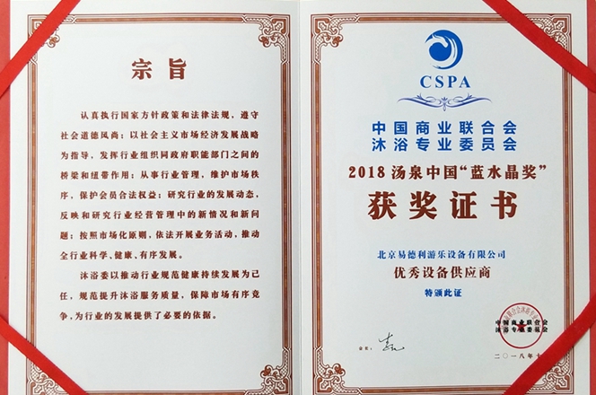 2018湯泉中國“藍(lán)水晶獎(jiǎng)”